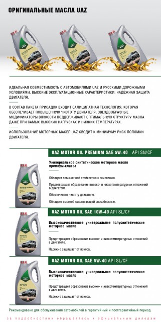 УАЗ запустил линейку оригинальных масел, идеально совпадающих с автомобилями марки и российскими дорожными условиями.