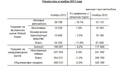 Компания Hyundai Motor, крупнейший автопроизводитель Южной Кореи, опубликовала отчет о продажах на внутреннем и международном рынках за ноябрь 2013 года.
